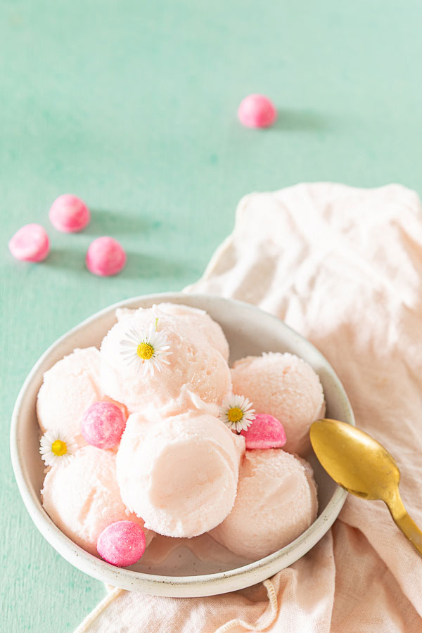 L’année dernière, dans le cadre de mon travail de photographe culinaire, j’ai mis au point cette recette de glace à la fraise et à l’huile d’olive pour un client. Vous avez été nombreux à voir passer cette photo sur mon compte Instagram et à m’en demander la recette. Je pensais l’avoir déjà publiée sur le blog mais c’était une erreur que je corrige donc aujourd’hui.